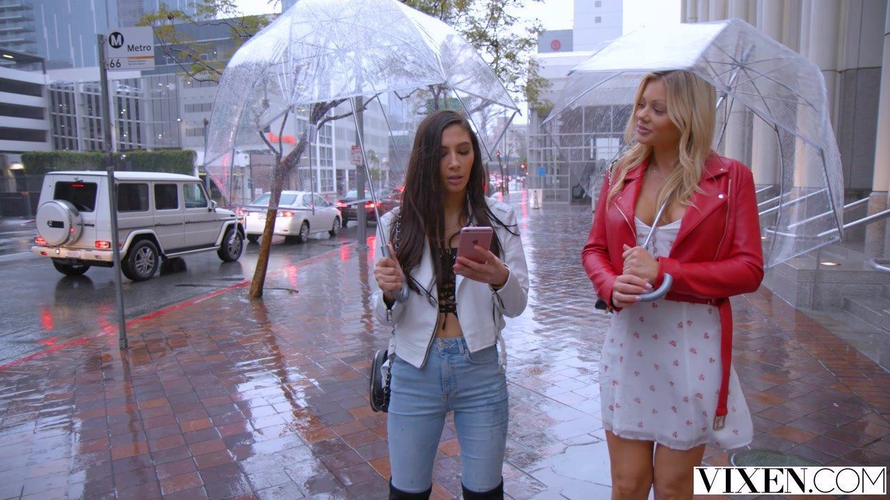 Две сексуальные подружки надевают шикарное красное белье и отправляются на встречу с обеспеченным мужчиной, который отодрал их и кончил двум красоткам в рот после классного жмж секса.