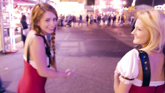Возбужденный парень после фестиваля октоберфест в Германии устроил страстный групповой секс с очаровательными телками. Самец довел до оргазма обеих красоток и облил их спермой.